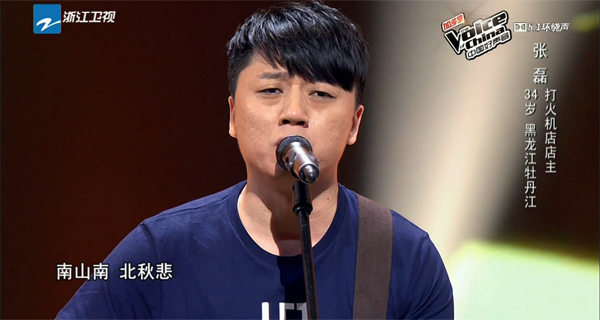 《好聲音》的盲選舞臺上,張磊抱著吉他演唱的一曲《南山南》,讓這首民謠大火,不過張磊本人卻有些不溫不火的架勢。在那英和周杰倫組導(dǎo)師對戰(zhàn)后,張磊開始嶄露頭角,在“鳥巢沖刺夜”獲得高分位列第一晉級五強(qiáng),將他的聲勢推到頂峰。
