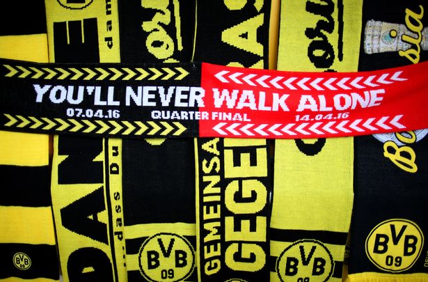 這顯然并不是多特蒙德單方面向紅軍球迷示好,畢竟這首歌已經(jīng)在客隊球迷中廣為傳唱。多特蒙德這邊南看臺的地位如同利物浦的KOP,大黃蜂死忠從1996年起也唱起了同樣的旋律。