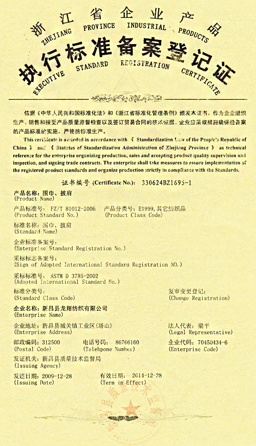 龍翔執(zhí)行標準登記證