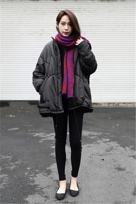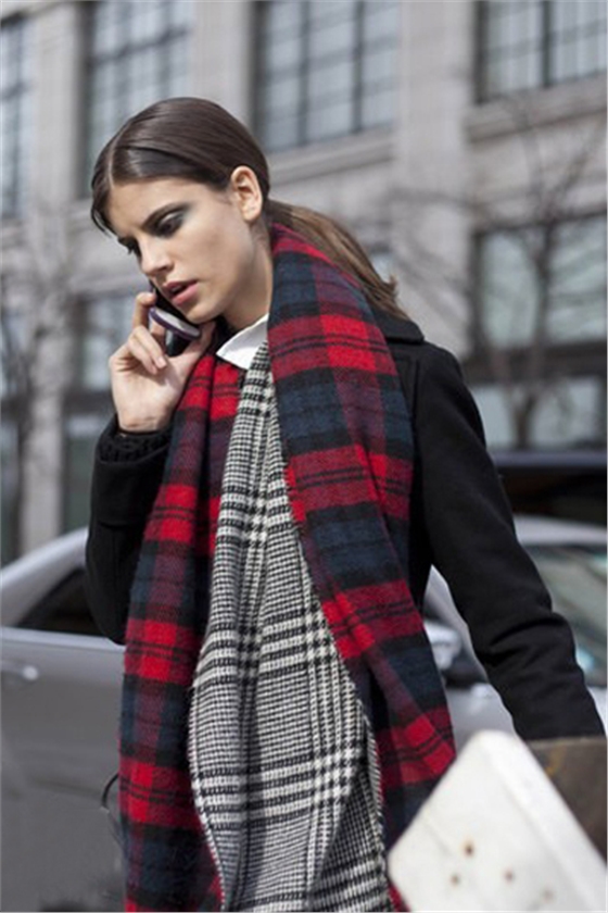 冬日最愛黑白灰,黑白灰的服飾經(jīng)典百搭不挑人,配上紅色格子圍巾,時(shí)尚大氣。