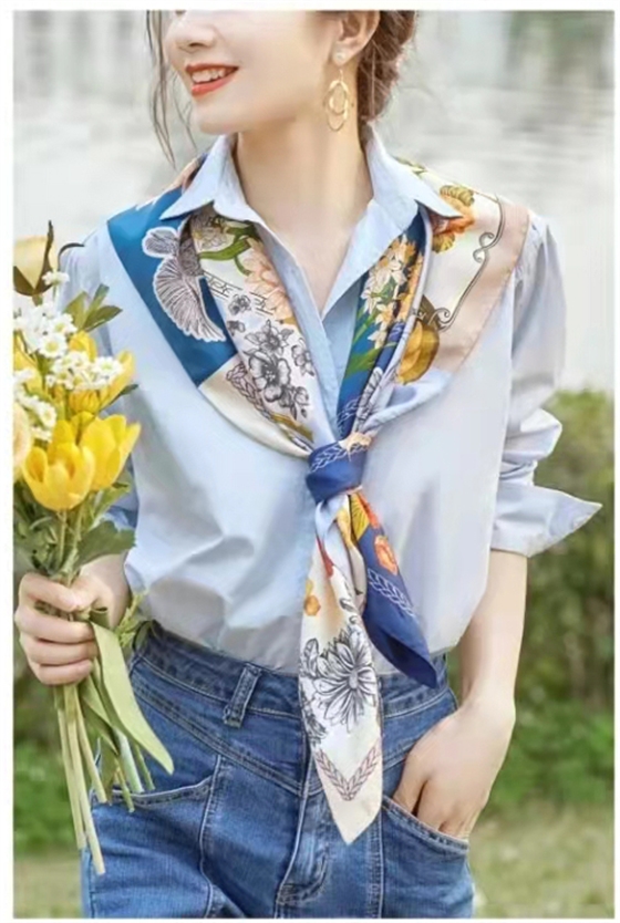 絲巾的常規(guī)尺寸有從迷你方巾(38*38cm)到特大方(140*140cm),種類相當(dāng)繁多,但最常見的是邊長90*2250px和50*1250px的正方形款式,它是最容易變化,最能展現(xiàn)絲巾風(fēng)情的尺寸。