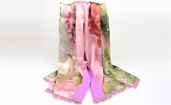 禪心藝術(shù)的圍巾大多是為山水花鳥的真絲絲巾,與龍翔的真絲拉絨底部相融合,成就了一款款高檔的真絲復(fù)合圍巾。